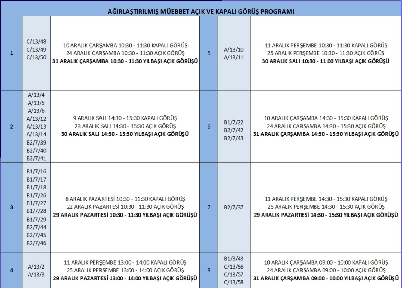 29 Aralık - 02 Ocak Yılbaşı Açık Görüşü (01 Ocak 2026 günü resmi tatile denk gelen görüşüler haftanın farklı günlerde yaptırılacak olup,görüş programı daha sonra yayınlanacaktır.
