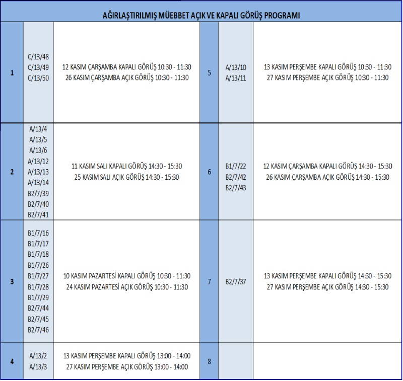 *Pandemi döneminde yapılamayan görüşler için 7 Ekim tarihinden itibaren görüş hakkını telefon seçenler 1 saat görüş ,ziyaret seçenler 1,5 saat görüş yapacaktır.